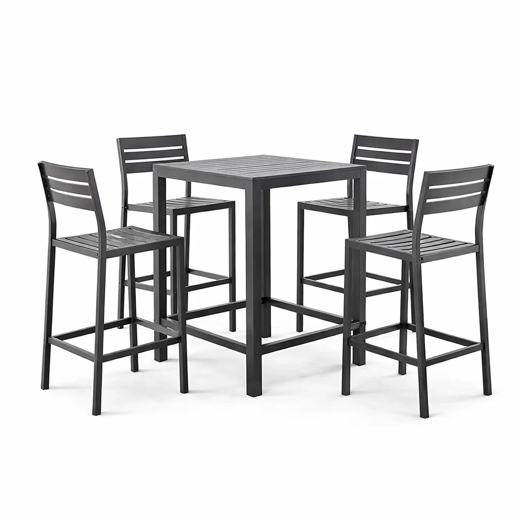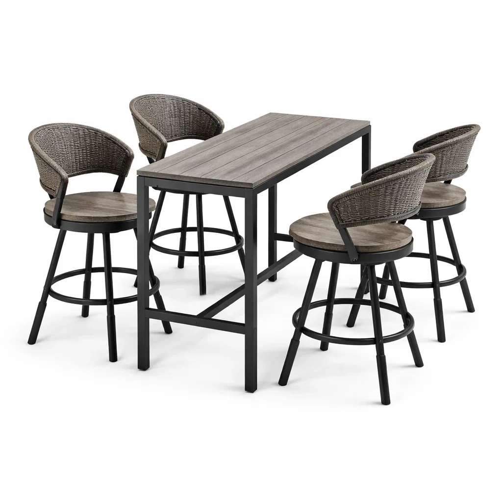 Ensemble de bar extérieur en métal et bois avec table haute et chaises