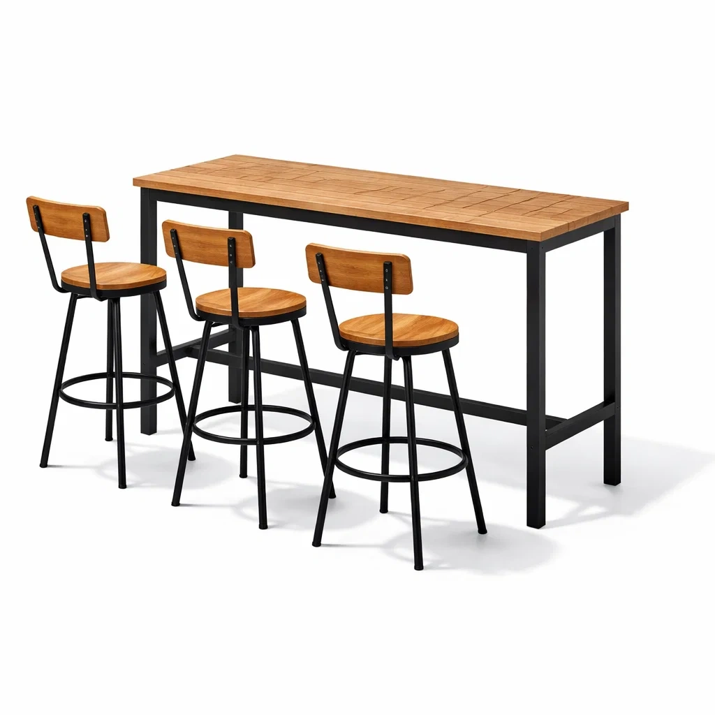 Ensemble de bar en métal et bois avec table haute et chaises