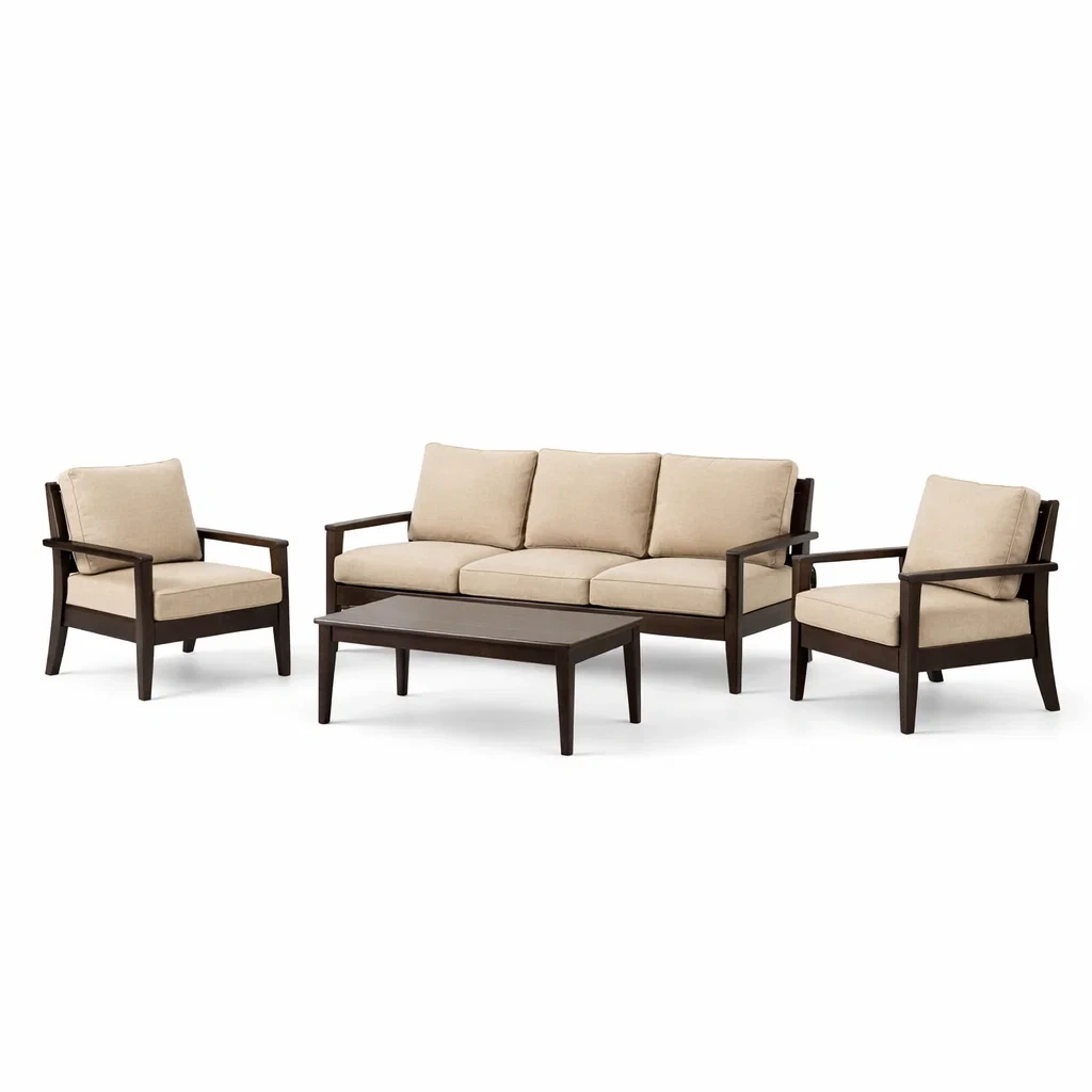 Ensemble de canapés extérieur en bois avec coussins beiges