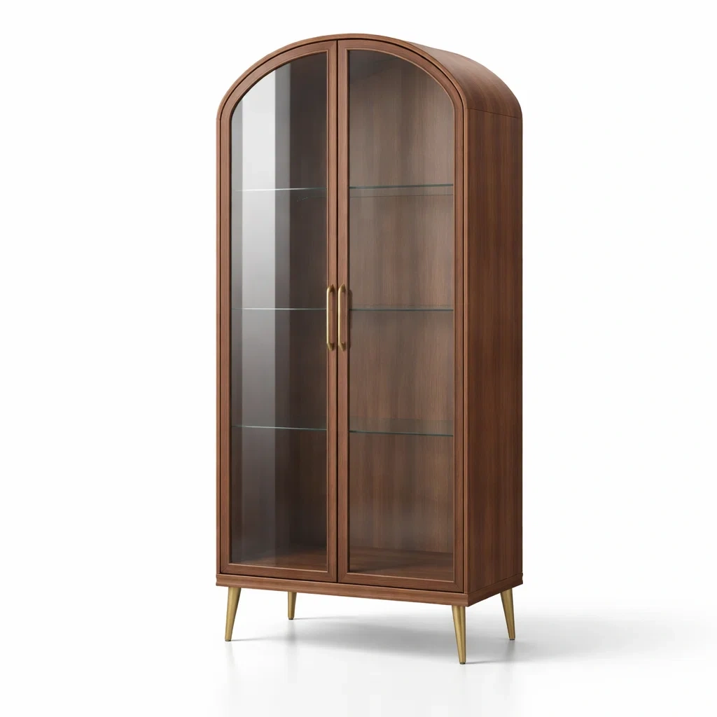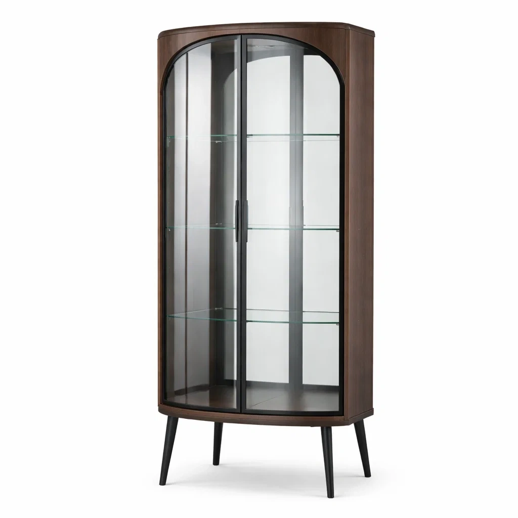 Vitrine en bois avec portes en verre et étagères